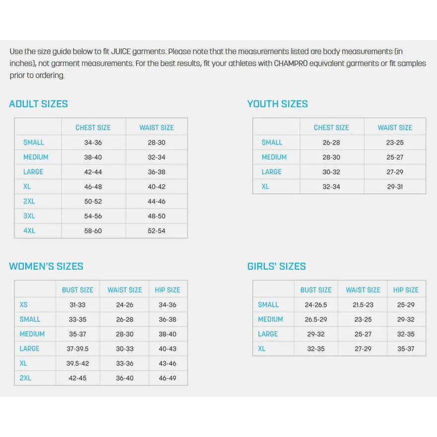 Take your creativity to the limit with JUICE! All JUICE garments are full-dye sublimated. Choose from different patterns and designs that are fully customizable! Juice Uniforms include all Art Fees, Unlimited Colors, Front Name or Logo, Back Name & Number and Sleeve Logos.