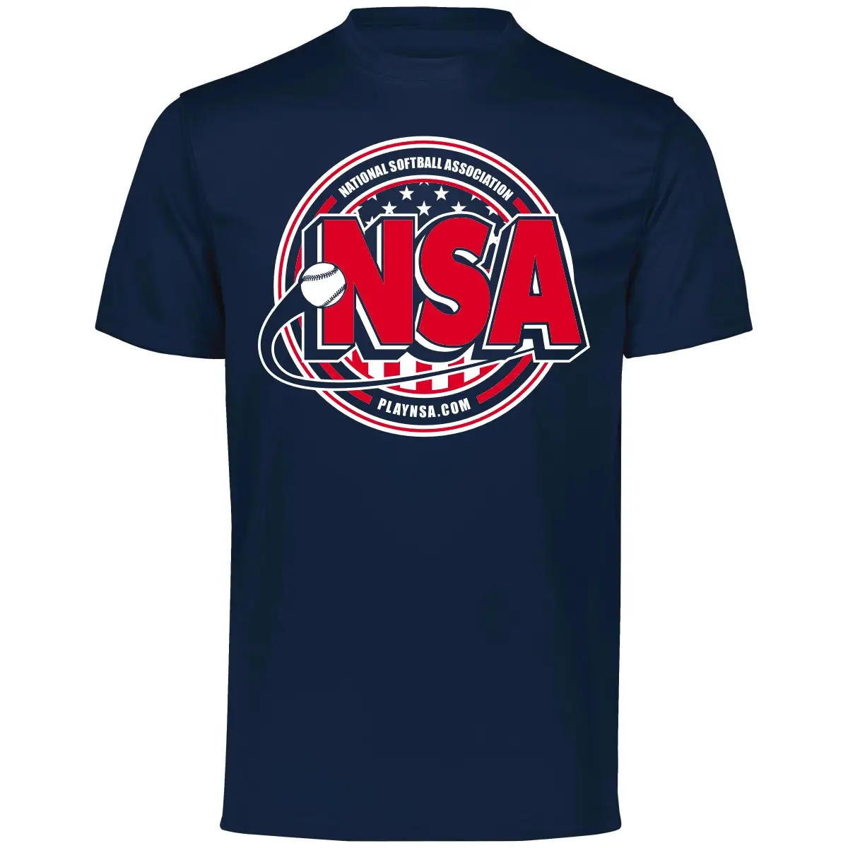 Represent the National Softball Association with this Patriotic Moisture Management Short Sleeve Shirt!