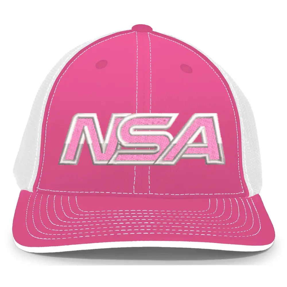 Represent the National Softball Association with this Pacific Headwear Trucker Flexfit Cap with a 3D Outline Logo.