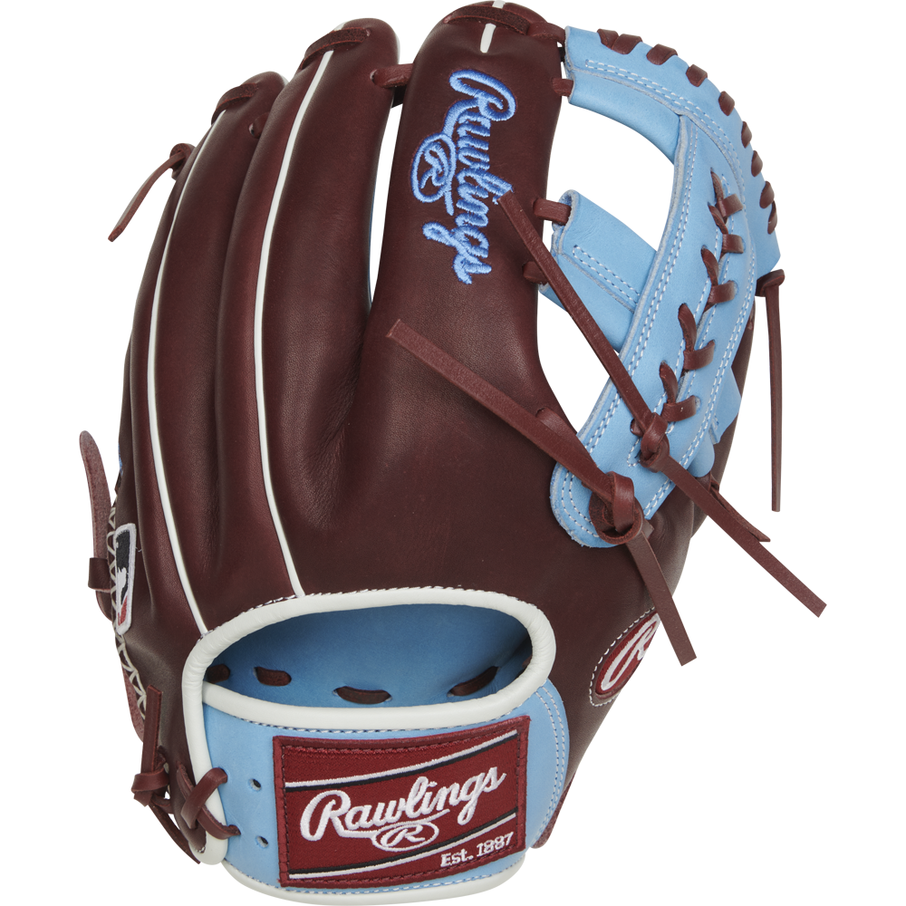 - Unique sherry and Columbia blue color combination finished by a sherry colored Rawlings embroidered patch logo