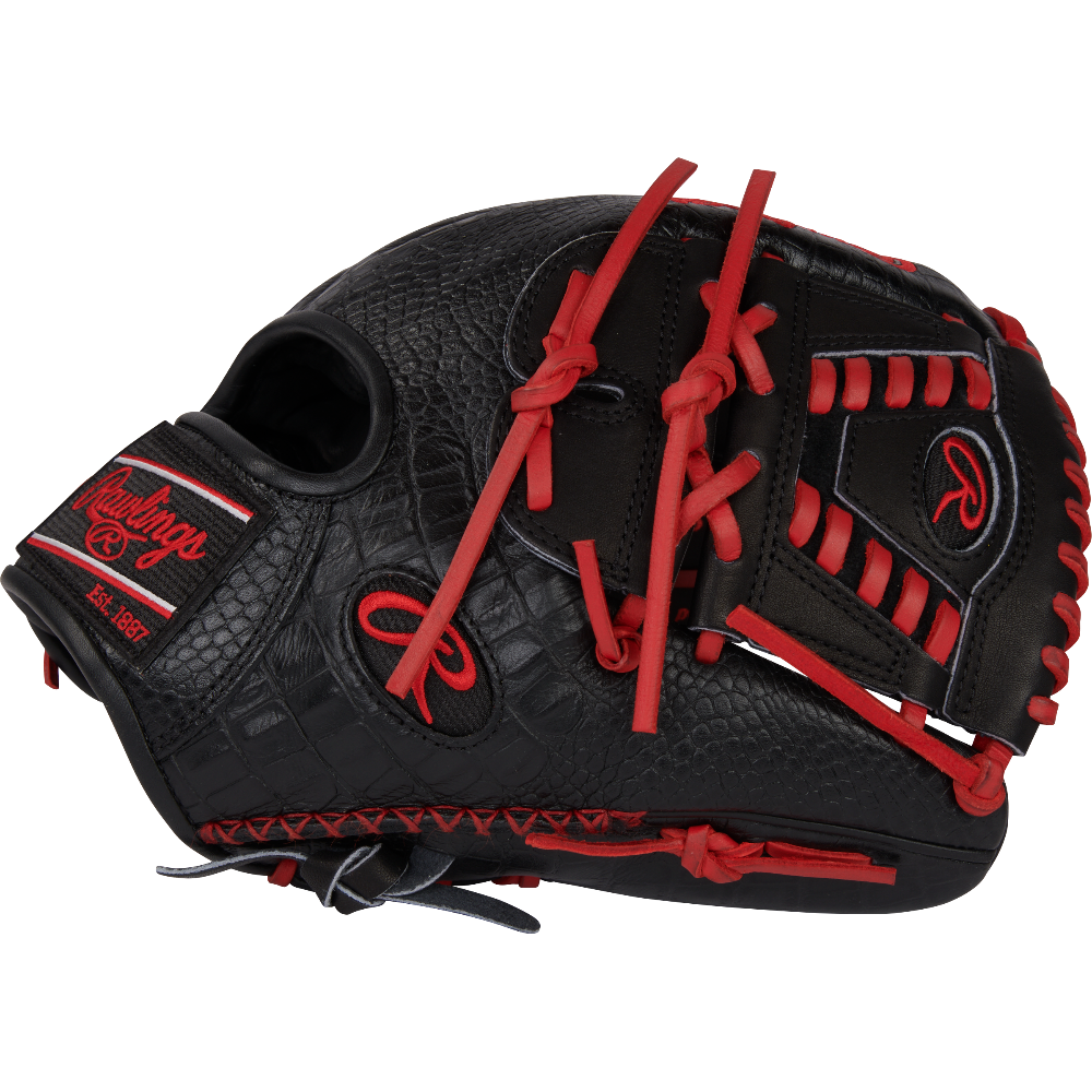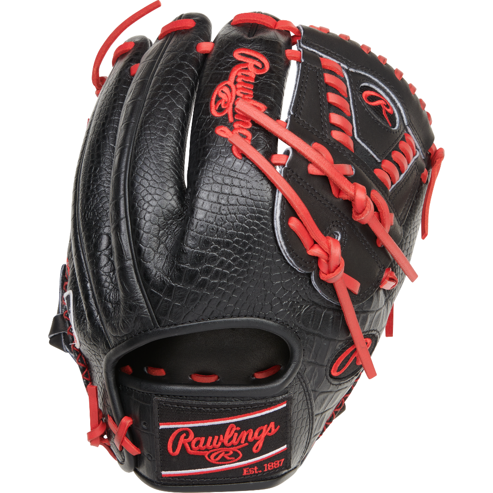 Stand out from the crowd with the Heart of the Hide ColorSync 6.0 infield/pitcher’s glove! Our glove designers artfully crafted this series from our ultra-premium steer-hide leather for pro-level quality and performance. This 11.75-inch infield/pitcher’s glove features a unique design thanks to the ColorSync patch and black croc-embossed leather back. As a result, it’s perfect for any player who wants to stand out on the mound or around the horn. The laced 2-piece solid web is the perfect complement to the popular 200-pattern, known for its deep pocket and trusted by dozens of pro infielders. In addition, the deer-tanned cowhide lining, thermoformed wrist lining, and padded thumb sleeve add comfort and usability. This gamer even features hand-sewn welting for durability and feel. This limited edition Heart of the Hide ColorSync 6.0 glove design won’t last for long, so get yours and make your next gamer a true work of art. Order yours now!