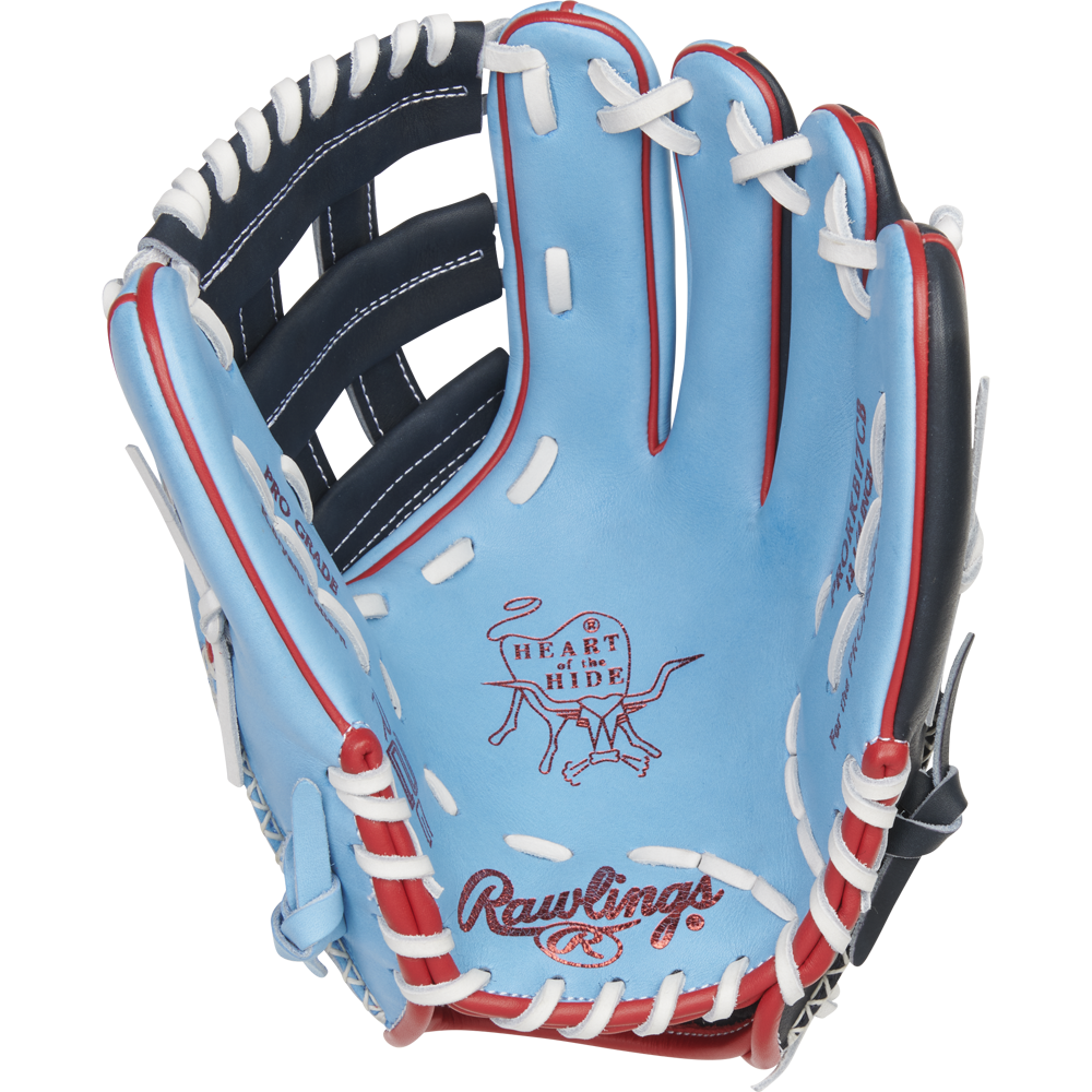 Add some color to your game with the Heart of the Hide R2G ColorSync 6.0 12.25-inch glove! Our designers crafted this gamer from ultra-premium steer-hide leather, and it has the perfect flash of style for any player. Like every R2G glove, it comes with with 25% more factory break-in so it’s ‘game-ready’ out of the box. Also, its interior features the same deer-tanned cowhide lining, padded thumb sleeve, and thermoformed wrist lining that give all Heart of the Hide gloves the superior fit and feel more pros trust.