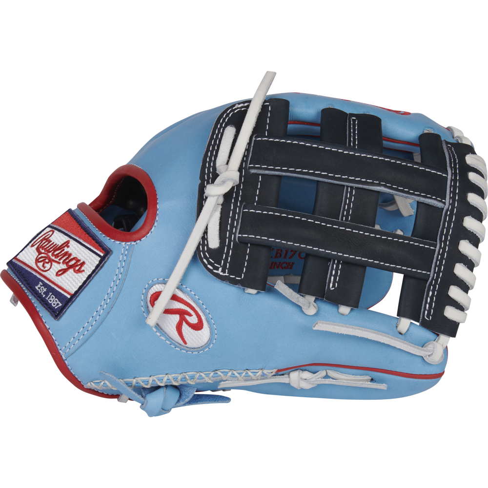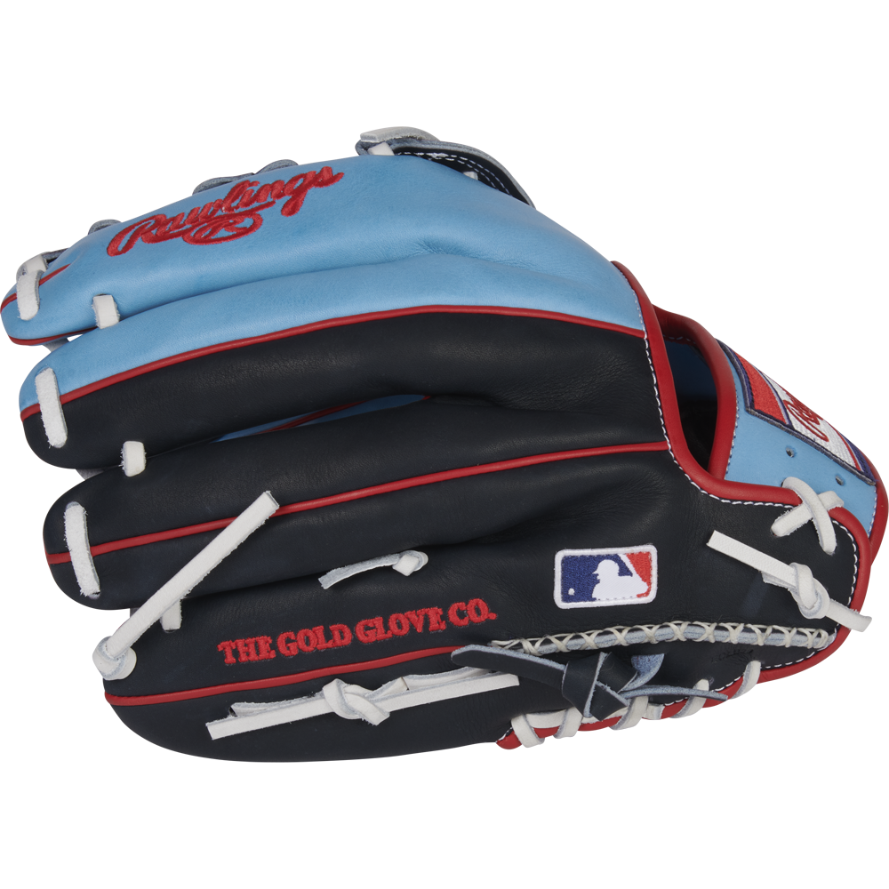 In addition to its interior features, this eye-catching Columbia blue and navy glove was also crafted in a 12.25-inch KB17-pattern, the game day model of superstar Kris Bryant. This pattern is a popular choice for utility players thanks to its deep round pocket that plays equally well in the infield or outfield. As a result, this ColorSync 6.0 glove offers the perfect combination of style and performance, and it will last you for years to come.Â
