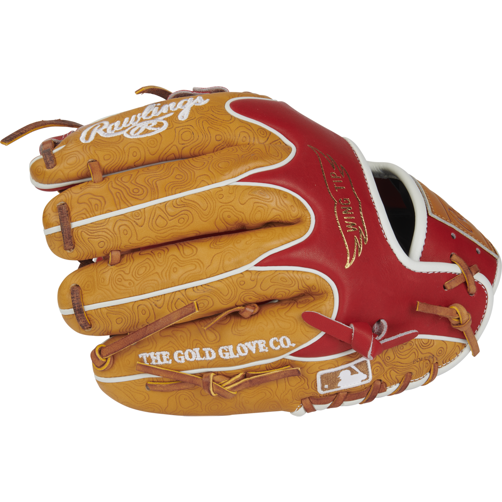 This 11.5-inch infield glove is like nothing else in the field: the “geoprint” topographical features stamped into the leather are an artful touch that give this limited-edition gamer a truly gorgeous look. The Heart of the Hide leather and 200 pattern give you the same performance that big leaguers have trusted for decades. For added style, we also added a cherry-red Wing-Tip design and special cross-designed web.