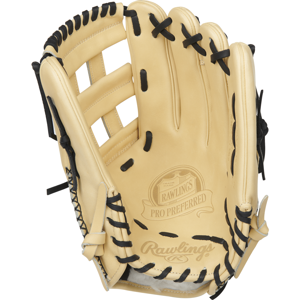 This H-web 12.75 inch Rawlings Pro Preferred glove is ideal for the serious outfielder. Handcrafted from flawless Kip leather and individually numbered, this glove is everything you’d expect from a Rawlings pro game day model. This glove features our popular 303 pro outfield pattern and uses 100% wool padding, the finest materials available for forming the perfect pocket.