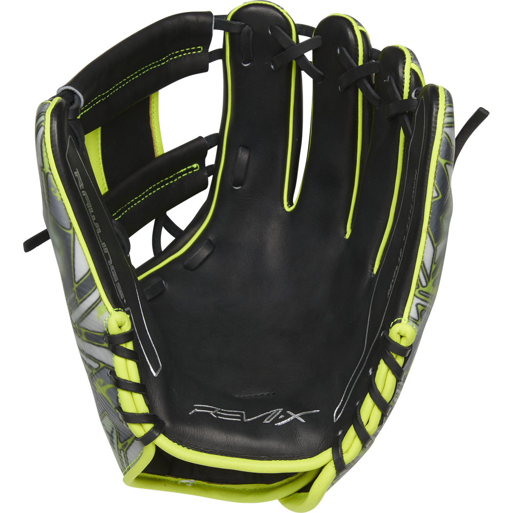 In addition, we’ve crafted our REV1X series gloves with a multi-layer back too. Each model even has its own molded, 3D-sublimated design.The 11.75-Inch REV1X glove is equipped with a stylish, eye-catching neon green and black design that is sure to turn heads on the field. The revolutionary lace-less I-web and heel will also help you stand out. This innovative new feature allows you to have a completely consistent feel, to make sure you’re snagging everything hit your way. And with the ultra-premium ‘HOH’ leather in all the right places, these REV1X gloves boast the same professional quality break-in & performance you expect from Rawlings.