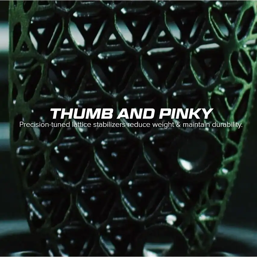 - Padding: Carbon’s Digital Light Synthesis™ Lattice Structure Stabilizers in Thumb & Pinky