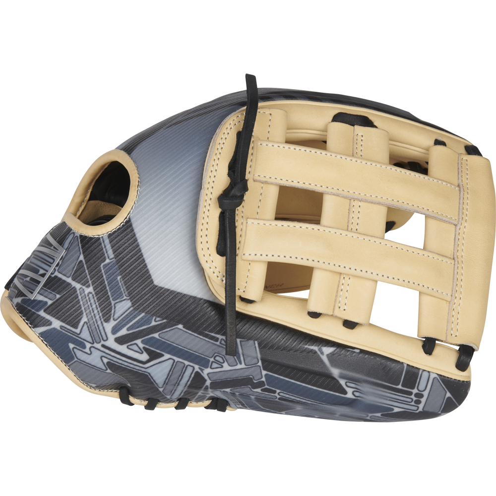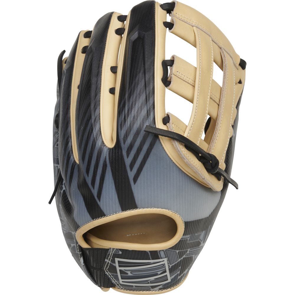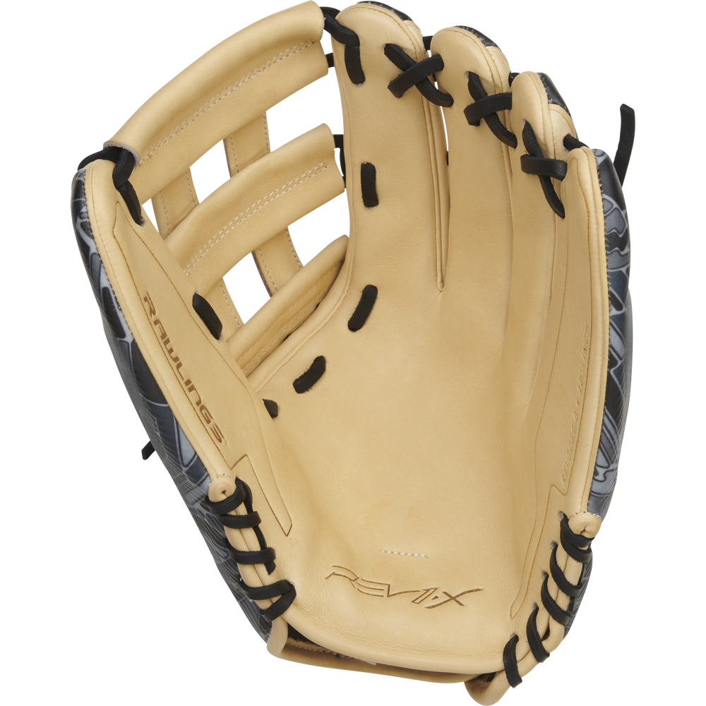 In addition, we’ve crafted our REV1X series gloves with a multi-layer back too. Each model even has its own molded, 3D-sublimated design. The 12.75-inch REV1X glove is equipped with a classic camel and black colorway, with a stylish sublimated design that is sure to turn heads on the field. The revolutionary lace-less H-web and heel will also help you stand out on the field. This innovative new feature allows you to have a completely consistent feel, to make sure you’re snagging everything hit your way. And with the ultra-premium ‘HOH’ leather in all the right places, these REV1X gloves boast the same professional quality break-in & performance you expect from Rawlings.