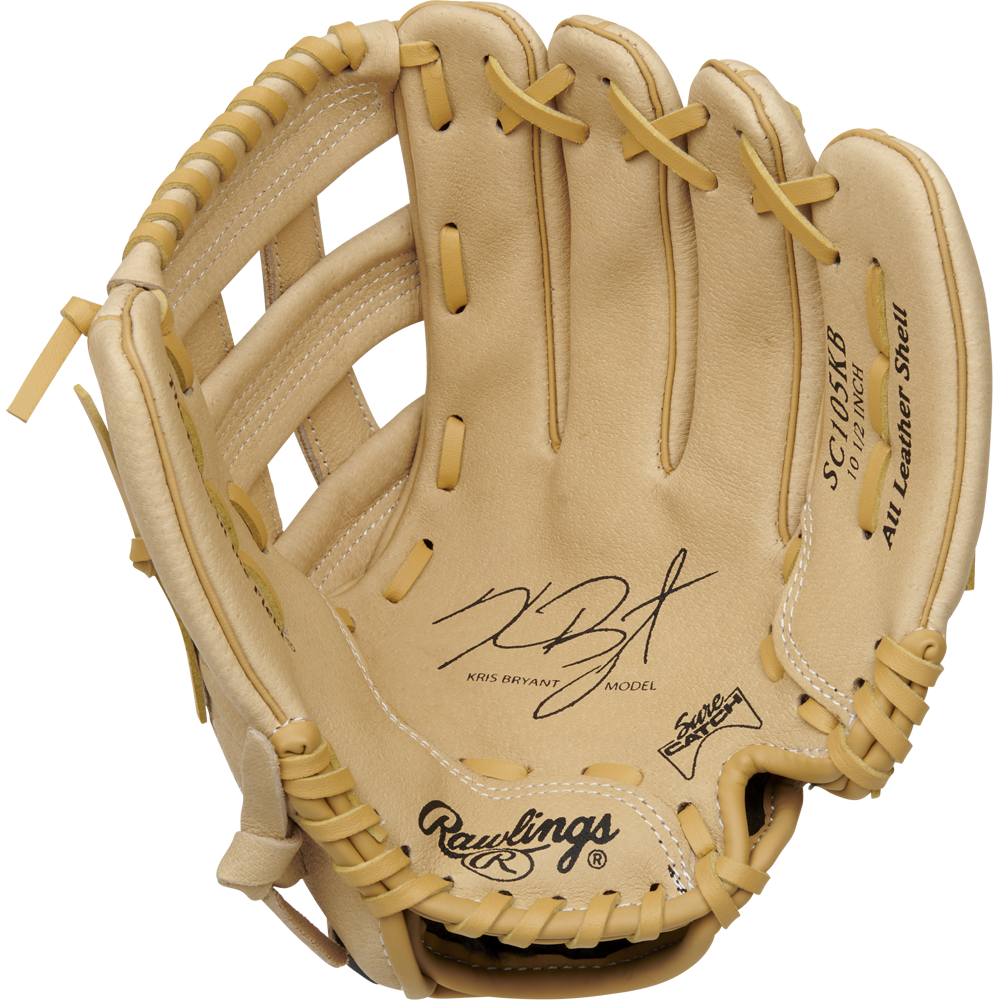 The Rawlings Sure Catchâ„¢ 10.5-Inch youth infield/outfield glove is constructed with a soft, all-leather shell for enhanced durability and pocket shape retention. Its Sure Catch heel cut out design allows for a quick and easy close making it perfect for young athletes who need a glove that’s game-ready off the shelf. Additionally, the cushioned finger linings offers added comfort and features a Velcro wrist strap for a custom fit. Kris Bryant Signature Model. Get yours today!