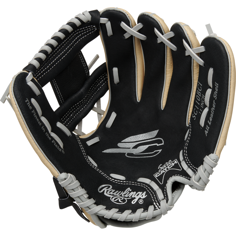 The Rawlings Sure Catchâ„¢ 11-Inch youth infield/outfield glove is constructed with a soft, all-leather shell for enhanced durability and pocket shape retention. Its Sure Catch heel cut out design allows for a quick and easy close making it perfect for young athletes who need a glove that’s game-ready off the shelf. Additionally, the cushioned finger linings offers added comfort and features a Velcro wrist strap for a custom fit. Get yours today!
